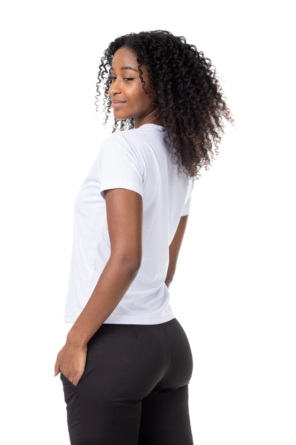 Seja no trabalho ou no lazer, esta camiseta se adapta ao seu ritmo, garantindo conforto o dia todo. Versátil e sofisticada, é a escolha certa para mulheres que buscam praticidade sem abrir mão do estilo.